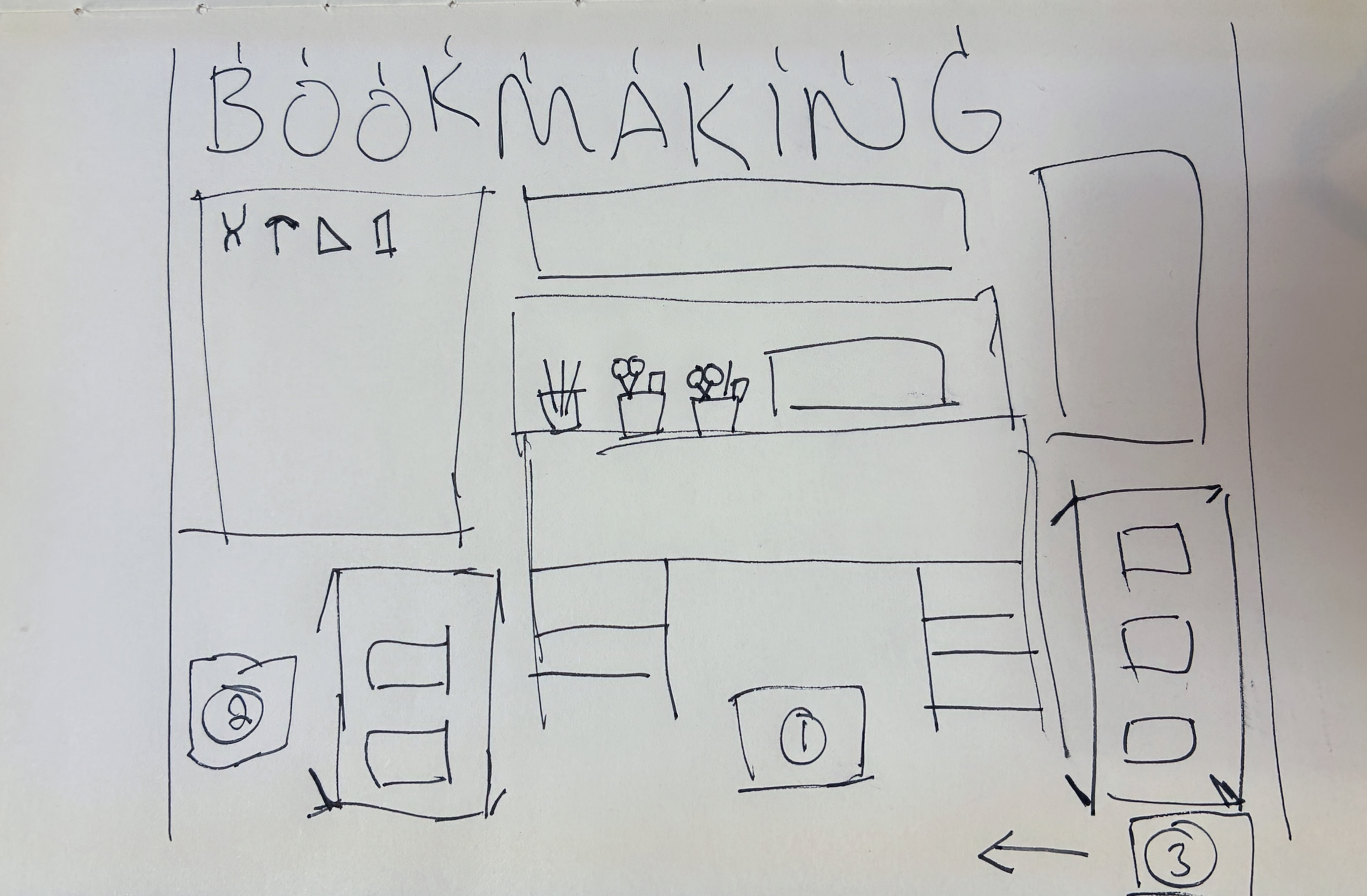 “Because you are so creative and have a rich architectural background, I’d love it if you could really let your mind go in terms of designing that bookmaking area. Ideally we are using simple materials that we can buy, but otherwise I hope you could make it something you’re really proud of, and which uses all your talents. Spend a day or two drawing and dreaming. I know you’ll come up with something brilliant.”