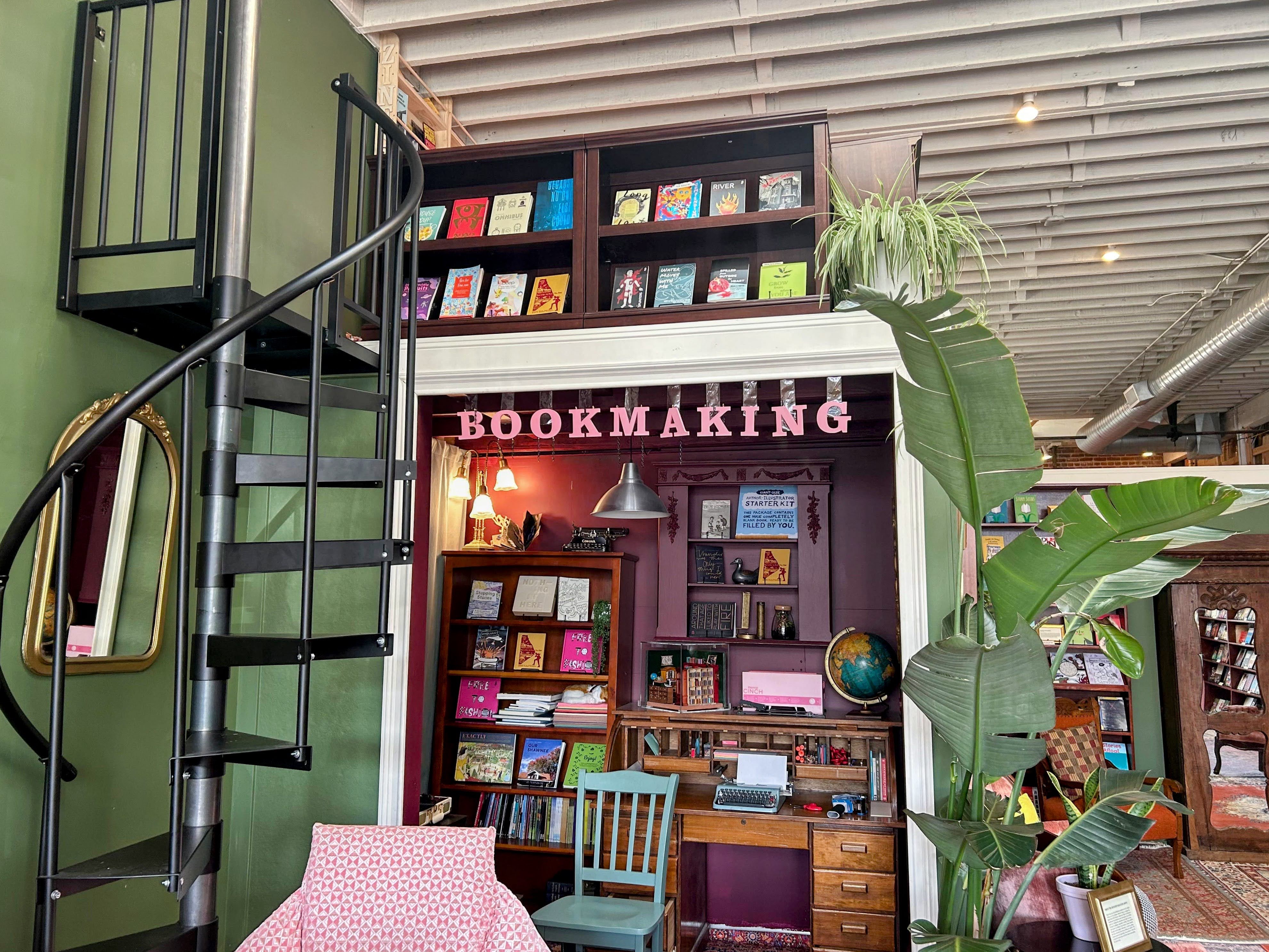 The International Library for Young Authors at 849 Valencia has a little nook space for bookmaking (binding) along with tools for making zines. The founder wanted to reimagine what the space could be: