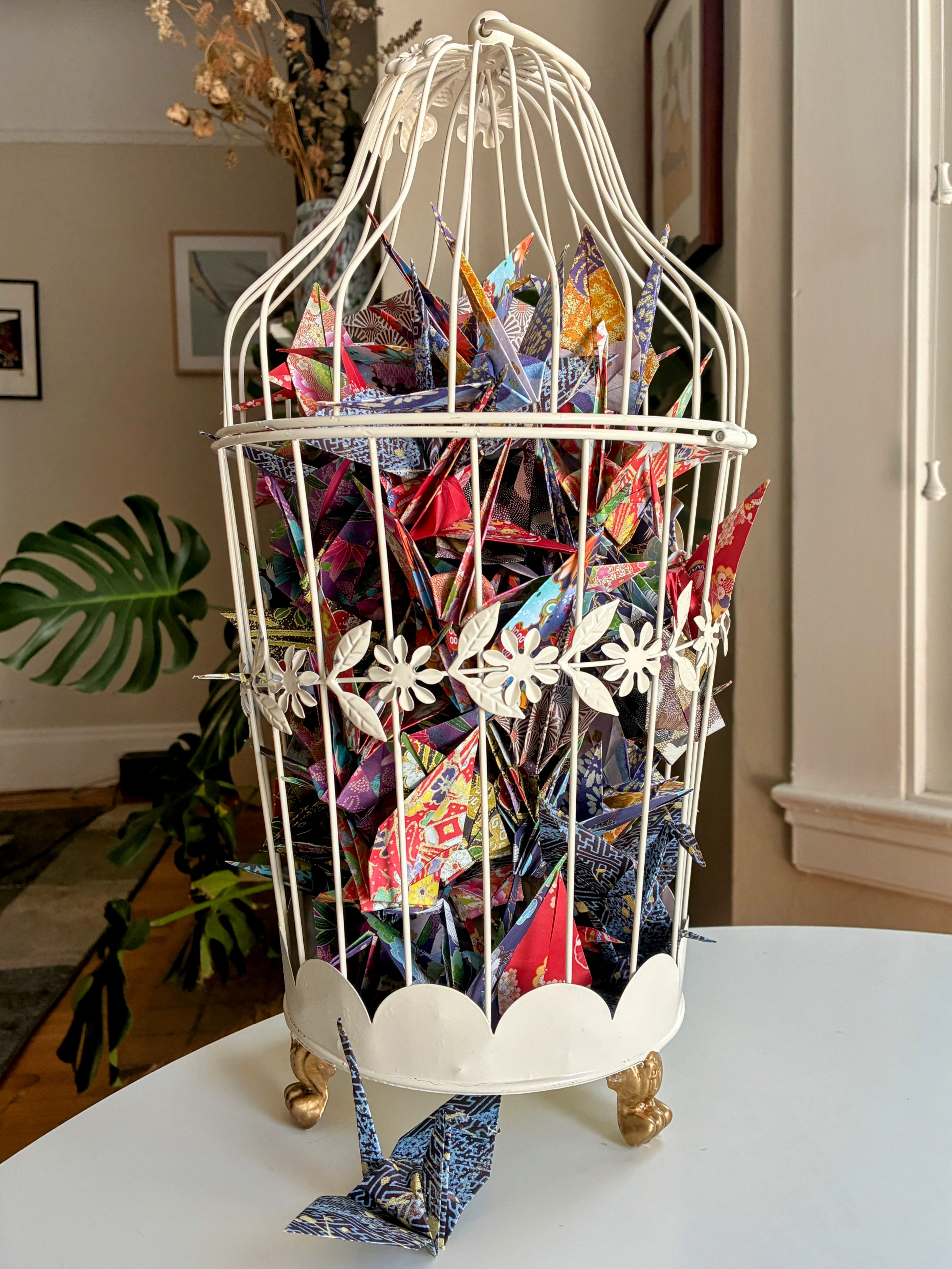 8.85" x 8.85" x 19" Iron, washi pattern origami paper
